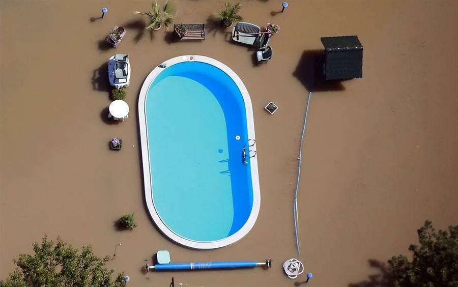 未被臟水污染的游泳池,如同一個寧靜的藍色避風港。