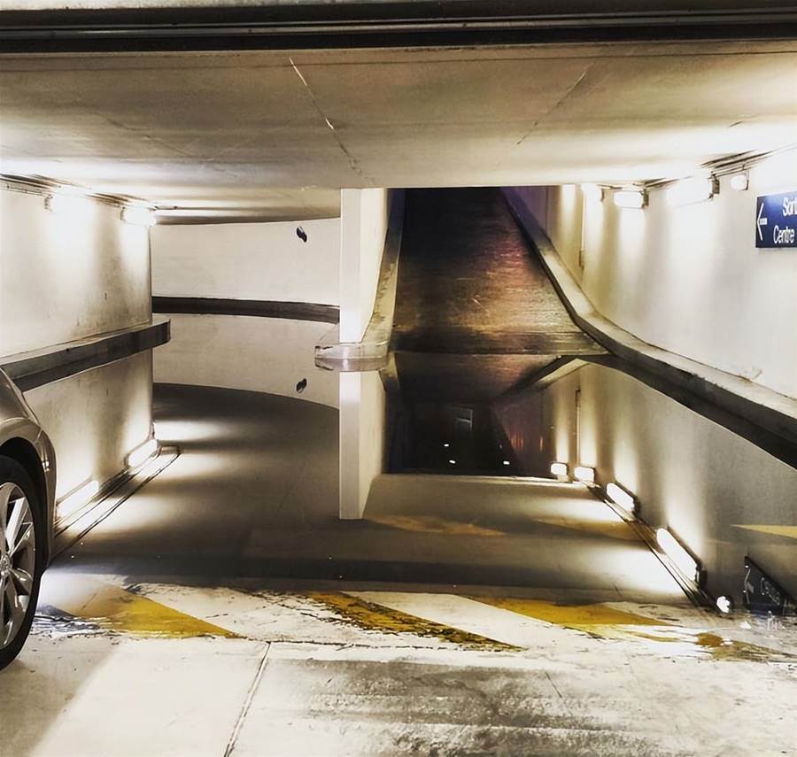 花了很長時間,才知道車庫被淹,天花板的反光。沒有下坡道。