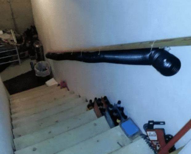 第三張:不知道是說懶還是聰明了,不想下樓梯丟垃圾,在扶手搭了個管道,直接讓垃圾滑進垃圾桶。