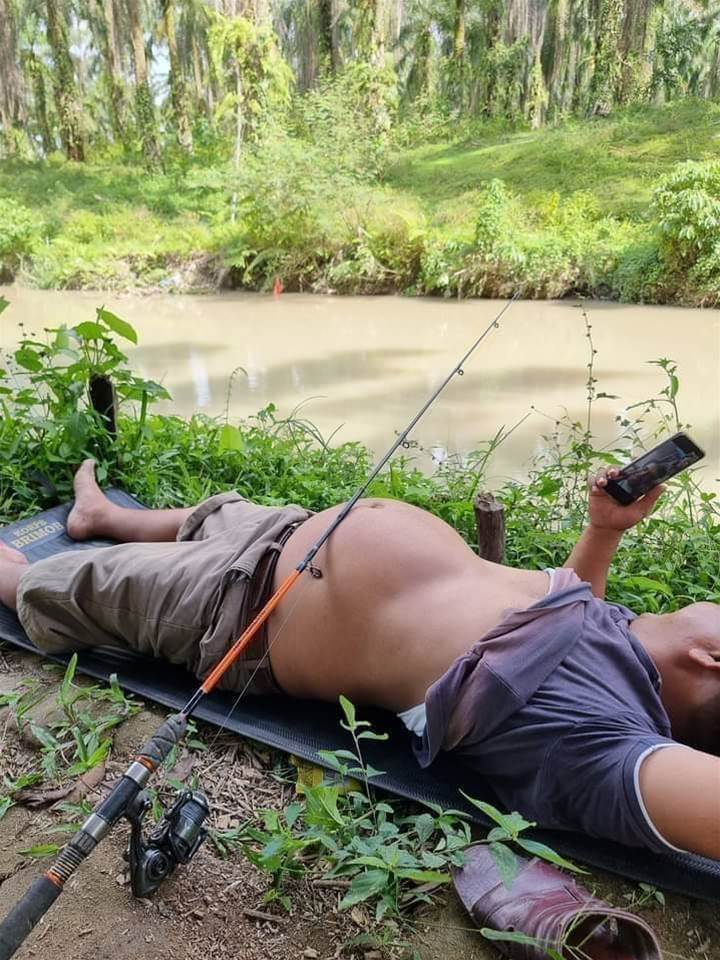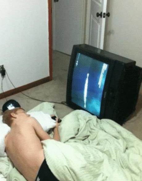 該男子直接把電視放到了面前,還翻了過來,像極了我們在床上看手機的樣子。