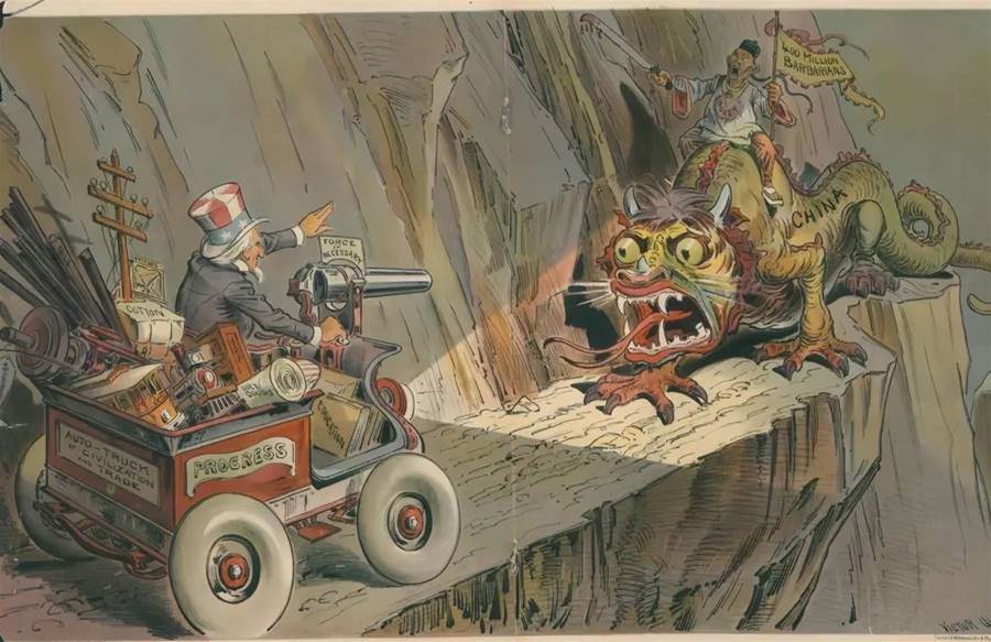 29.美國一本名為《法官》的諷刺雜志在1890年刊登的插圖,清朝被描繪成了一個邪惡的劇痛。
