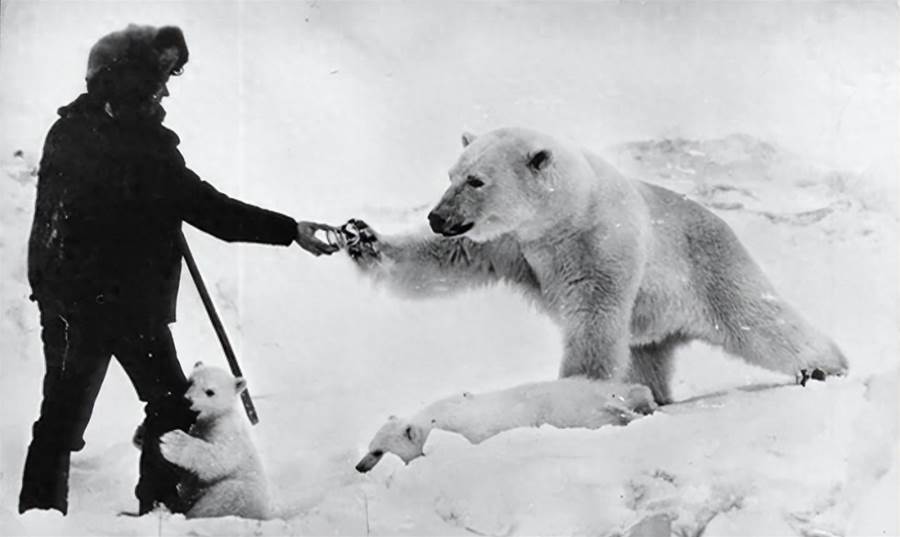 14.1950 年,蘇聯士兵在楚科奇半島喂食饑餓的北極熊,小熊緊緊地抱著投食的蘇聯士兵,恨不得管他叫一聲親爹。