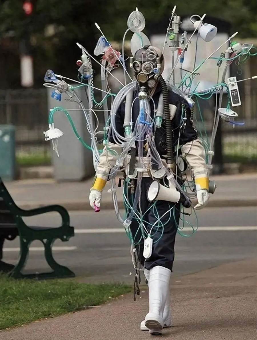 5.國外一位行為藝術家用廢棄電子產品自制的裝甲,