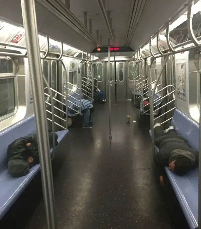 19.窮人哪兒都有,紐約的捷運上也有無家可歸的流浪漢。
