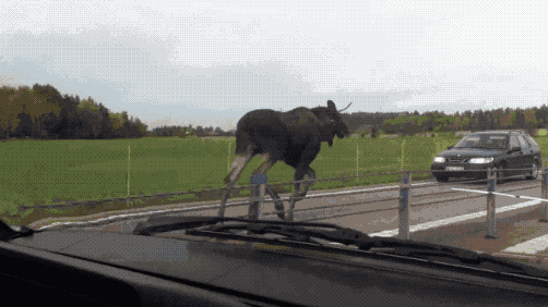 17. 在路上奔跑的巨大駝鹿比汽車還要高,它們的體型和力量令人感到敬畏和驚奇。