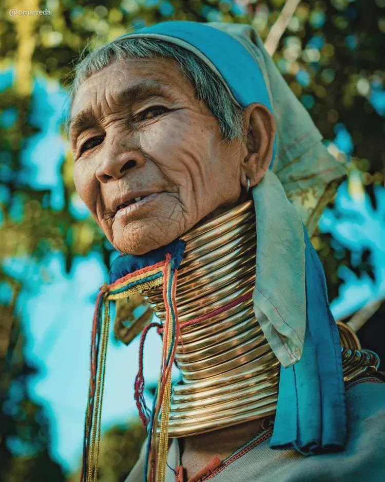 5. 緬甸Kayan部落的女性從小就開始在脖子上佩戴沉重的圓形項鏈,并隨著年齡增長不斷增加,導致她們的脖子變得越來越長,因此也被稱為「長頸族」。
