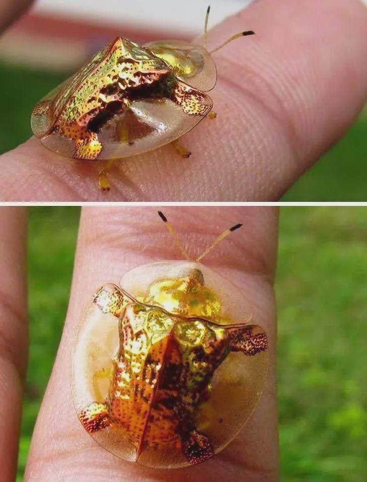 14. 金光璀璨的金龜甲蟲身上覆蓋著一件黃金般的鎧甲,這種外觀令人印象深刻。