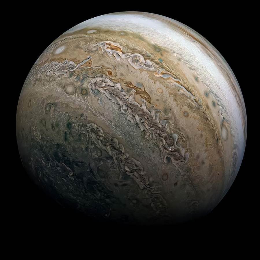 29. 這張照片展示了木星上的一個海豚形狀的云層結構,這種奇妙的形狀和圖案讓人對木星的天氣和大氣層產生更多的好奇和想象。