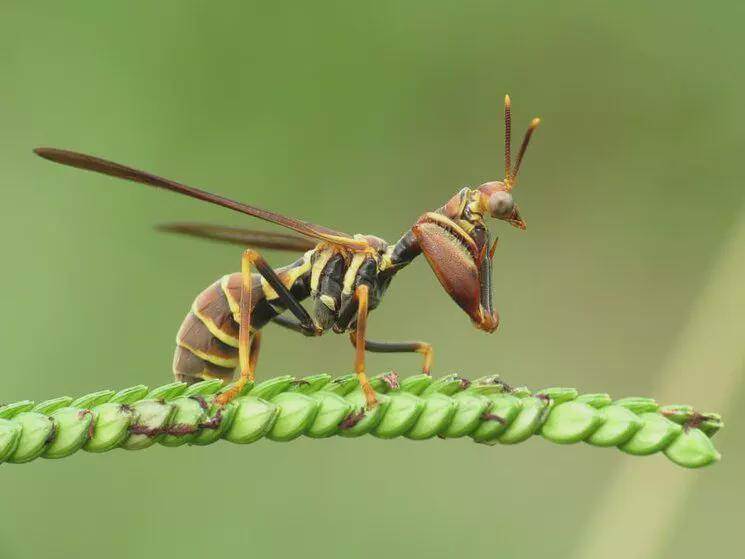 8. 黃蜂螳螂是一種外形奇特的生物,其上半身類似于螳螂,而下半身則呈現出黃蜂的特征,這種獨特的形態讓人不禁想起造物主的神奇創意。