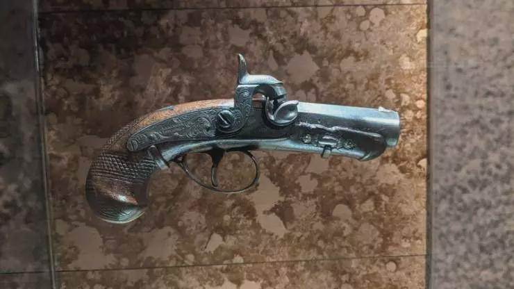 19. 這把槍是殺死美國前總統林肯的兇器,它在1865年的劇院包廂中發射,擊中了林肯的頭部,成為美國歷史上的重要事件之一。