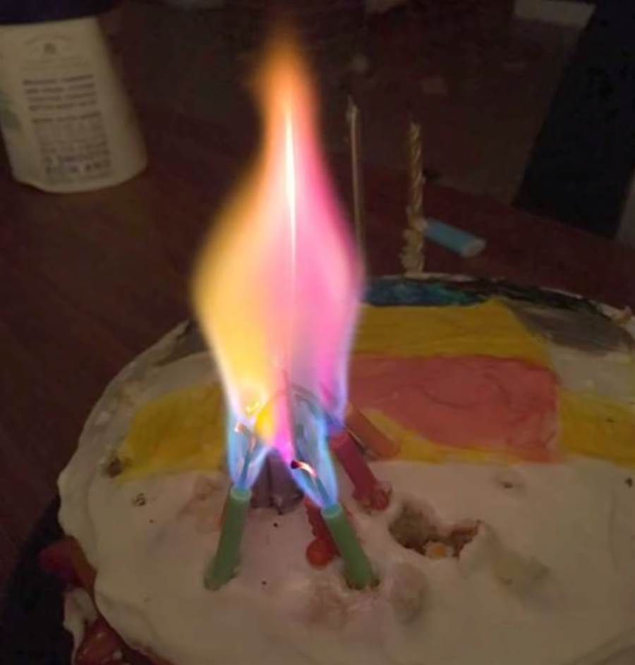 30. 過生日的正確方法,蛋糕上的小蠟燭聚在一起燃燒會出彩虹般的火焰。