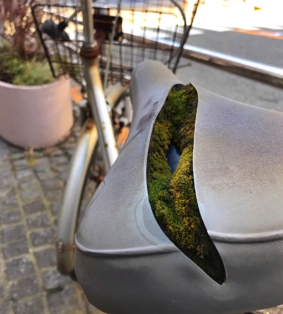 27. 被苔蘚撐開的腳踏車座,見證了生命的力量與堅韌。