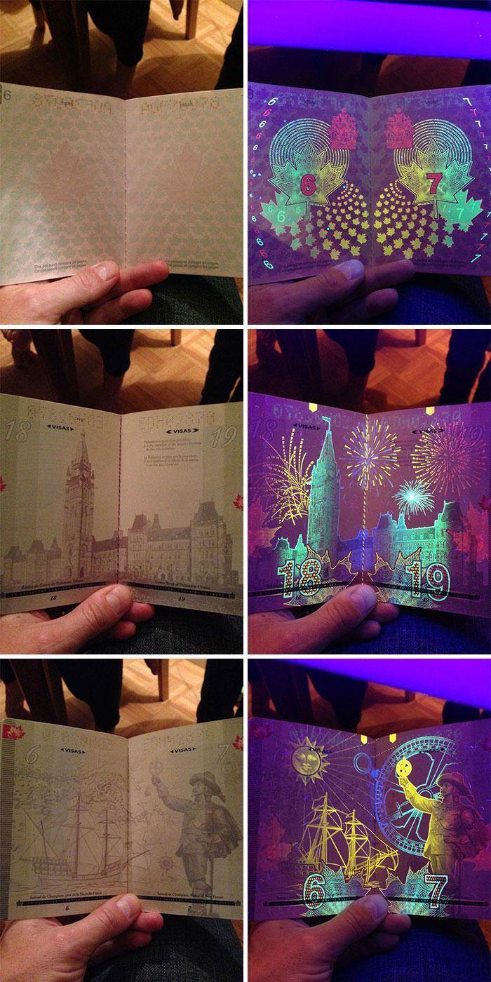 11. 在紫外線下,加拿大護照展現出了別樣的風采。