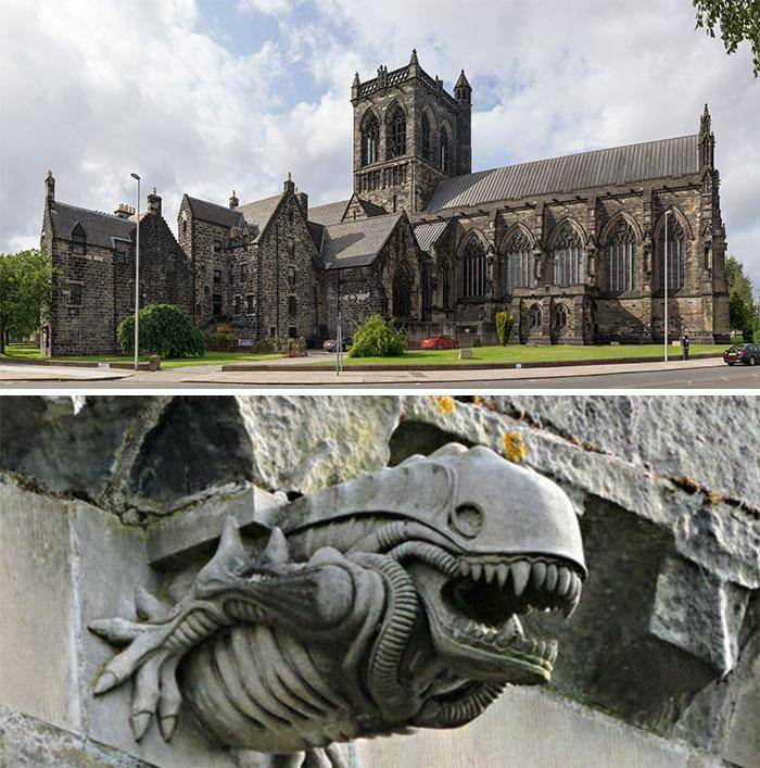4. 佩斯利修道院拱門上的「外星人」石像鬼,讓人不禁猜測其背后的故事。