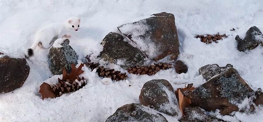 14.雪地里的雪貂。