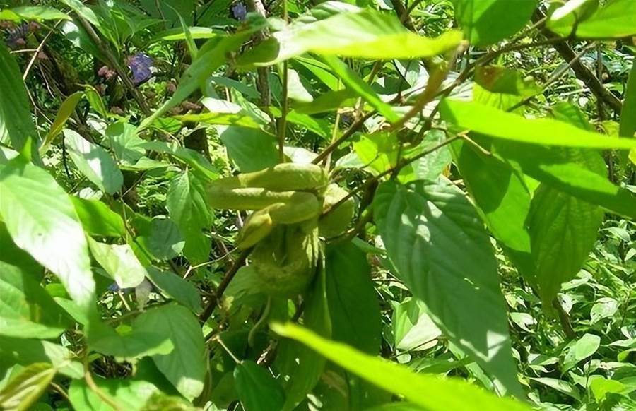 2.藏在一片綠葉中的青色蛇。