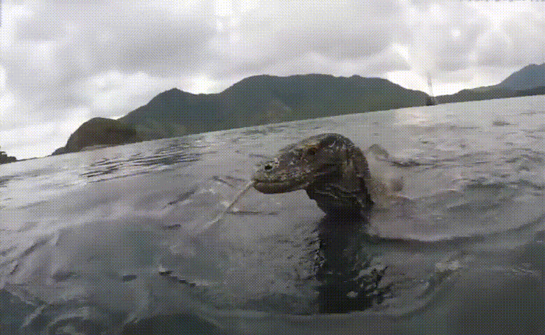 巨大的科莫多龍試圖登上劃艇,林卡島