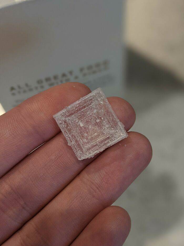 在我的海鹽包里發現了一個完美的鹽晶體。