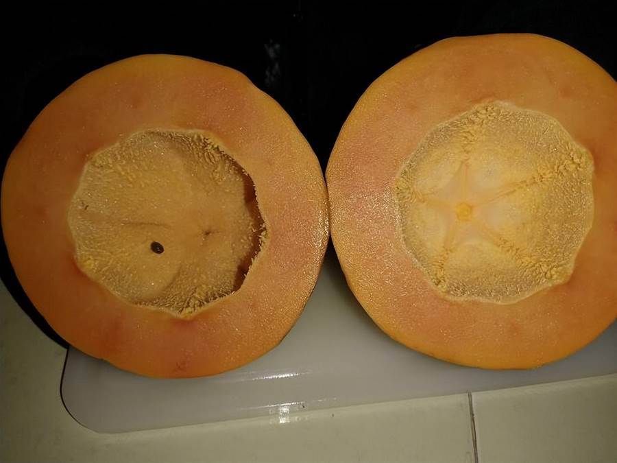 這個木瓜最后只有一粒種子在里面。