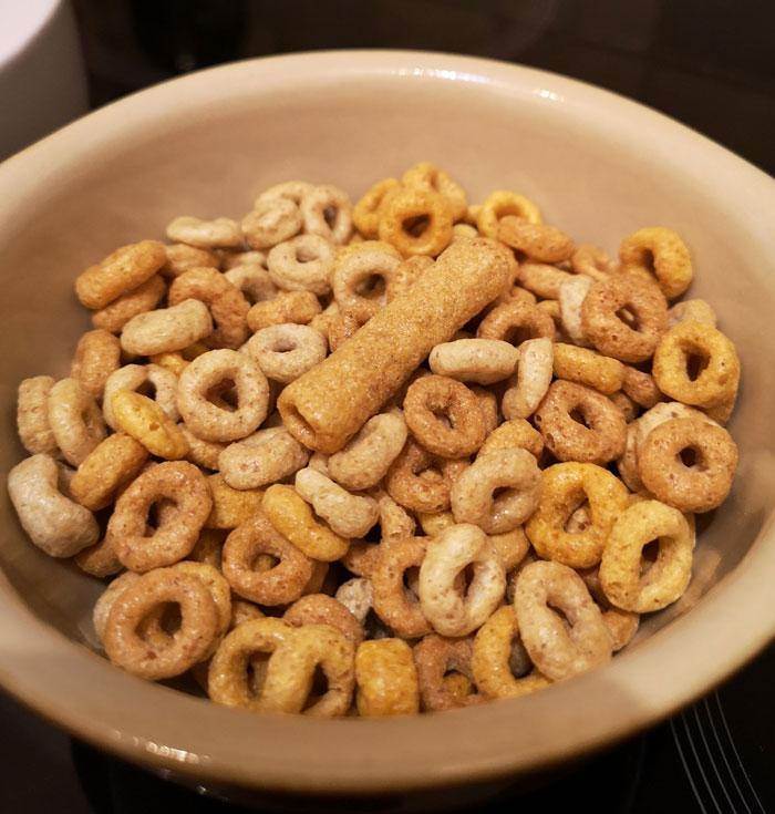 今天早上我妻子的麥片里有一個麥片筒。